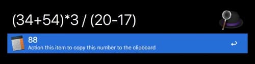 Казалось бы, такая простая вещь, но очень удобно. Чтобы что-то посчитать, мне не надо открывать калькулятор — я забиваю вычисления прямо в строку Альфреда, а результат автоматом копируется в буфер обмена.