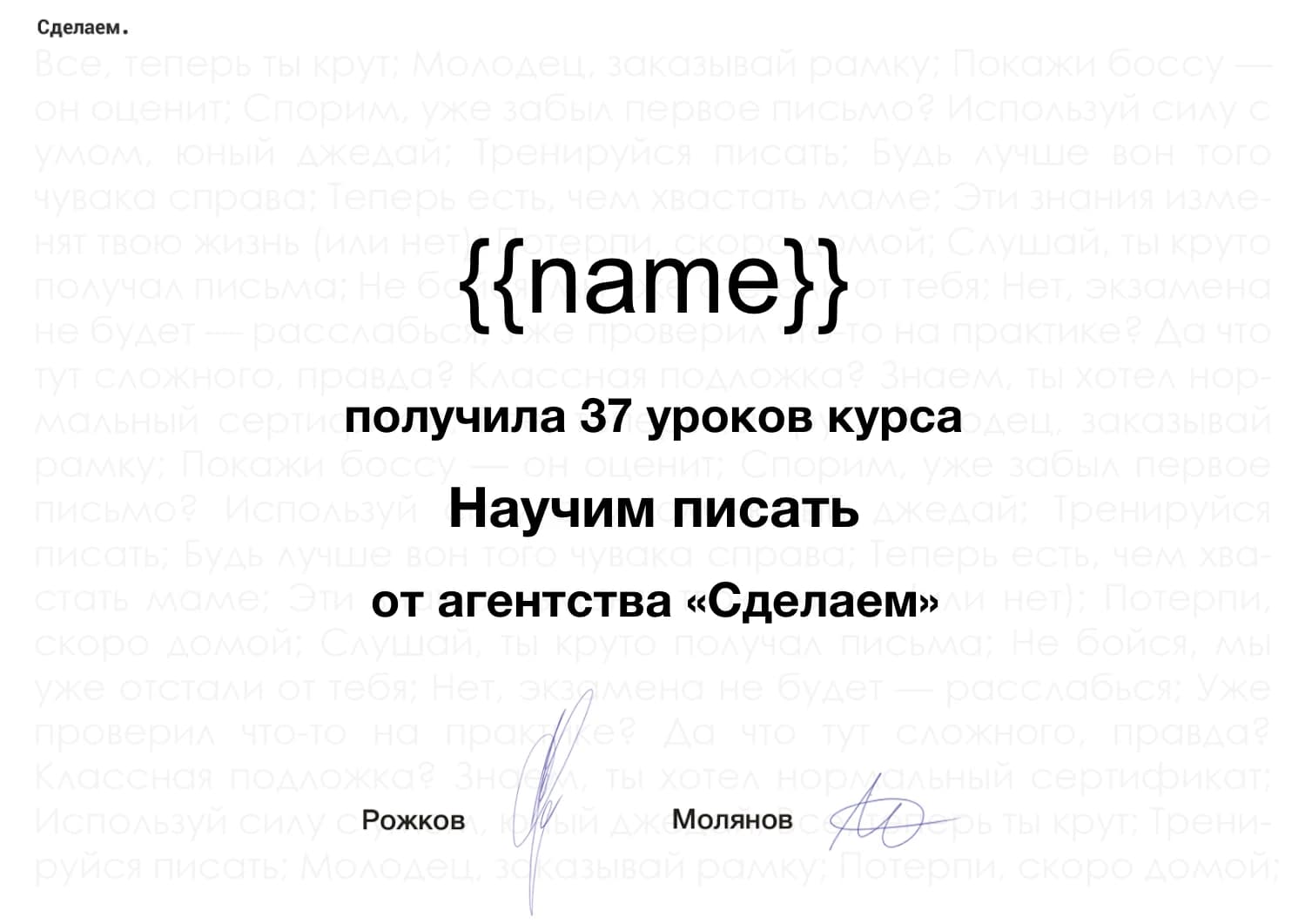 У меня есть рассылка, на которую подписываются люди, месяц получают уроки, а в конце им должен прийти диплом. Никаких групп и потоков нет, все подписываются вразнобой. Каждую неделю появляются новые «выпускники», которым надо сделать дипломы. А после скидок и распродаж таких людей сотни.