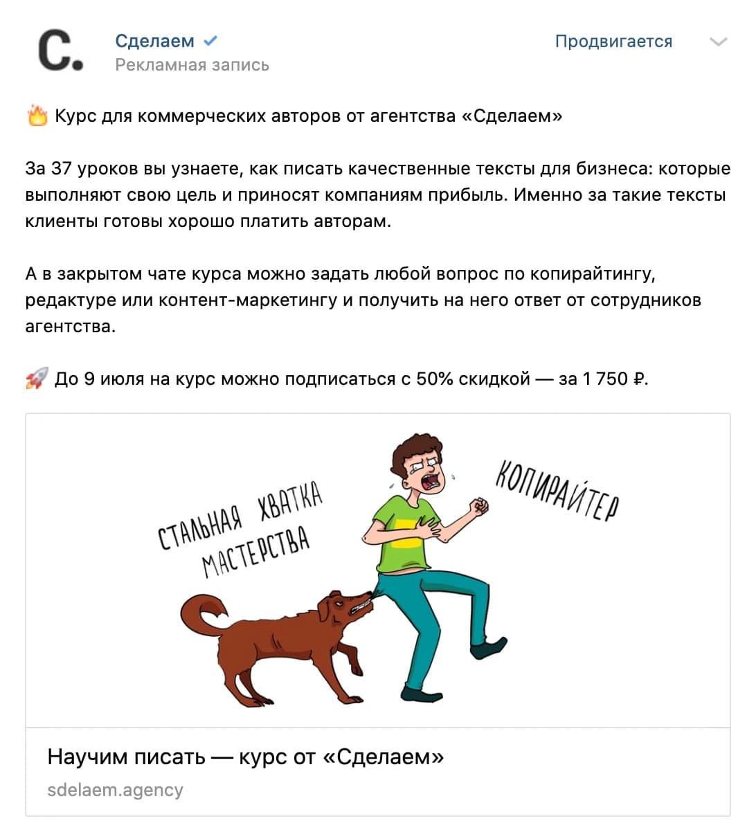 Устроили распродажу курса для копирайтеров, потратили 50 000 ₽ на рекламу — получили 580 000 ₽ выручки. Рассказываем, как это получилось.