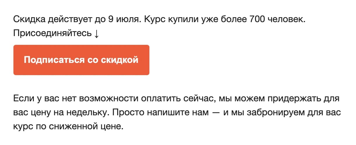 В последних письмах мы написали, что, если возможности оплатить прямо сейчас нет, а подписаться хочется, можно написать нам — и мы сохраним цену на неделю.