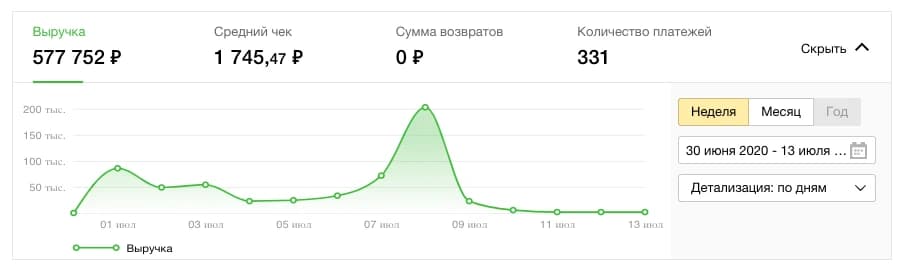 За неделю мы продали 330 подписок на курс и получили 580 000 выручки. Потратили 48 600 на рекламу, 10 000 на редизайн лендинга, и еще 21 500 — комиссия Яндекс.Кассы.