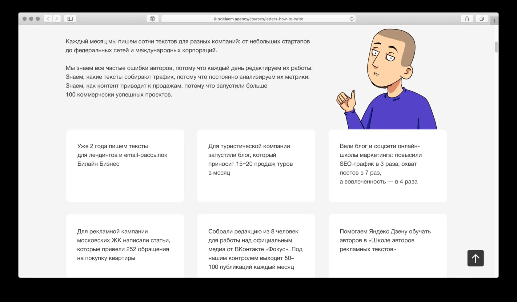 Поэтому лендинг решили переработать: добавить подробностей о нашем опыте и самом курсе в начале, показать больше скриншотов уроков и отзывов. Заодно обновили дизайн, чтобы выглядело поприятнее.