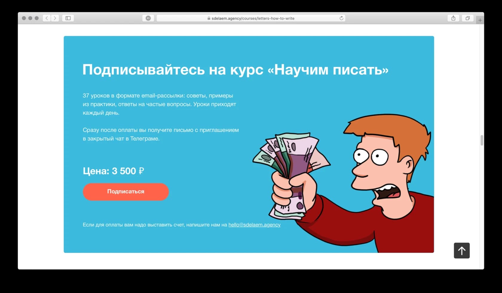 Мы уже проводили подобные акции, и условия всегда были одинаковыми: в течение недели можно было подписаться на курс со скидкой 50%. Они приносили нам по 80−200 тысяч при минимальных затратах на рекламу. В этот раз мы захотели пробить потолок и собрать хотя бы 300 тысяч прибыли.