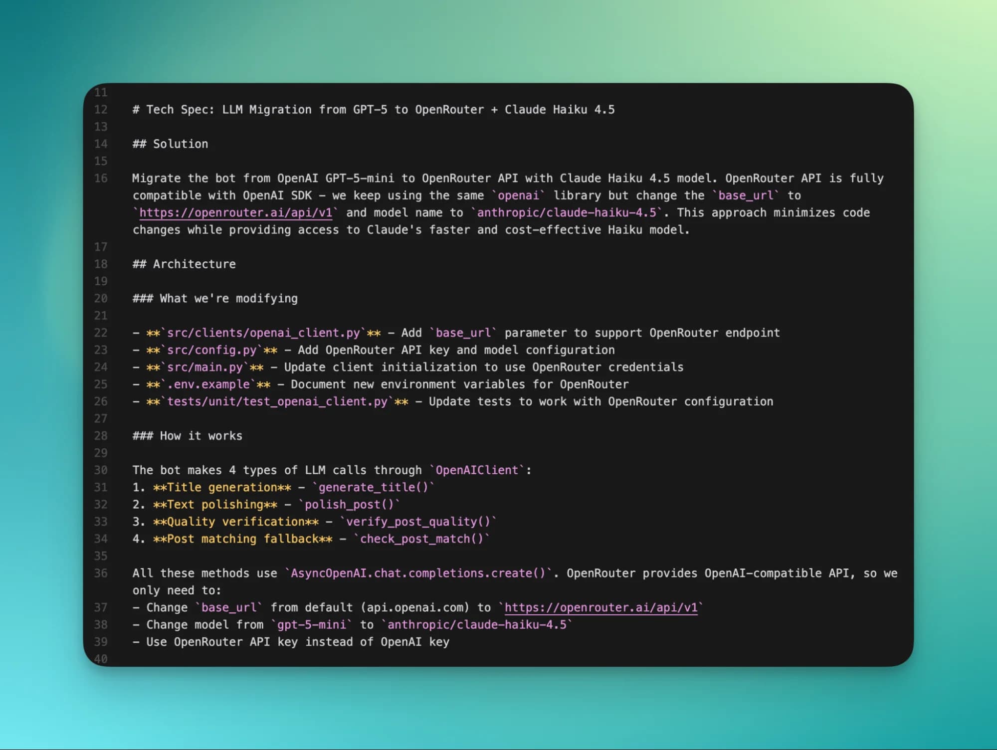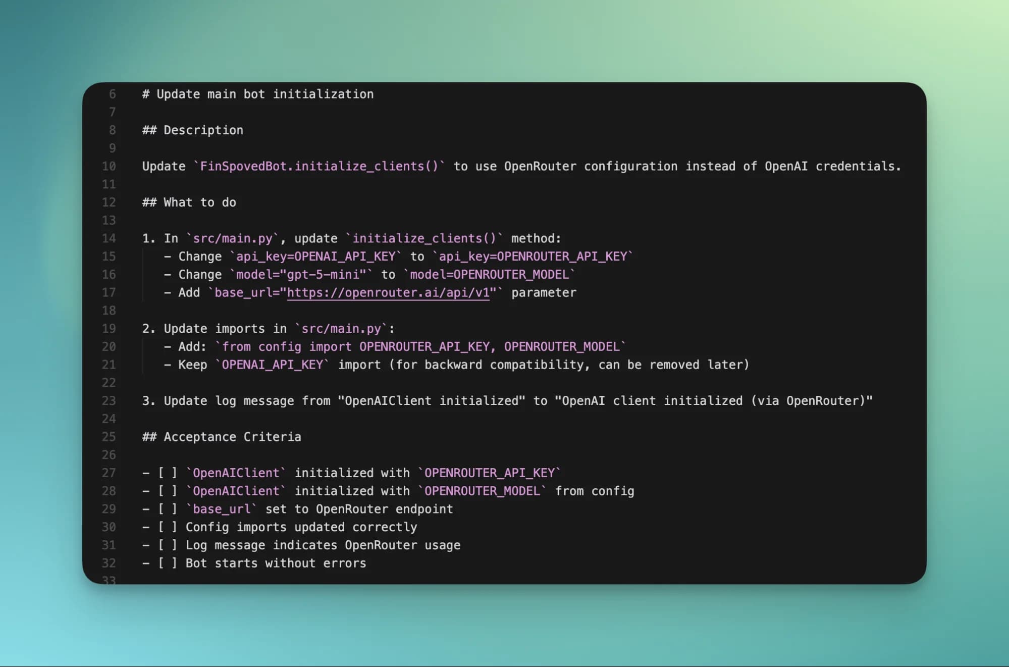 А дальше на основе аудита можно составить новое техзадание — и отправить агента исправлять все косяки.